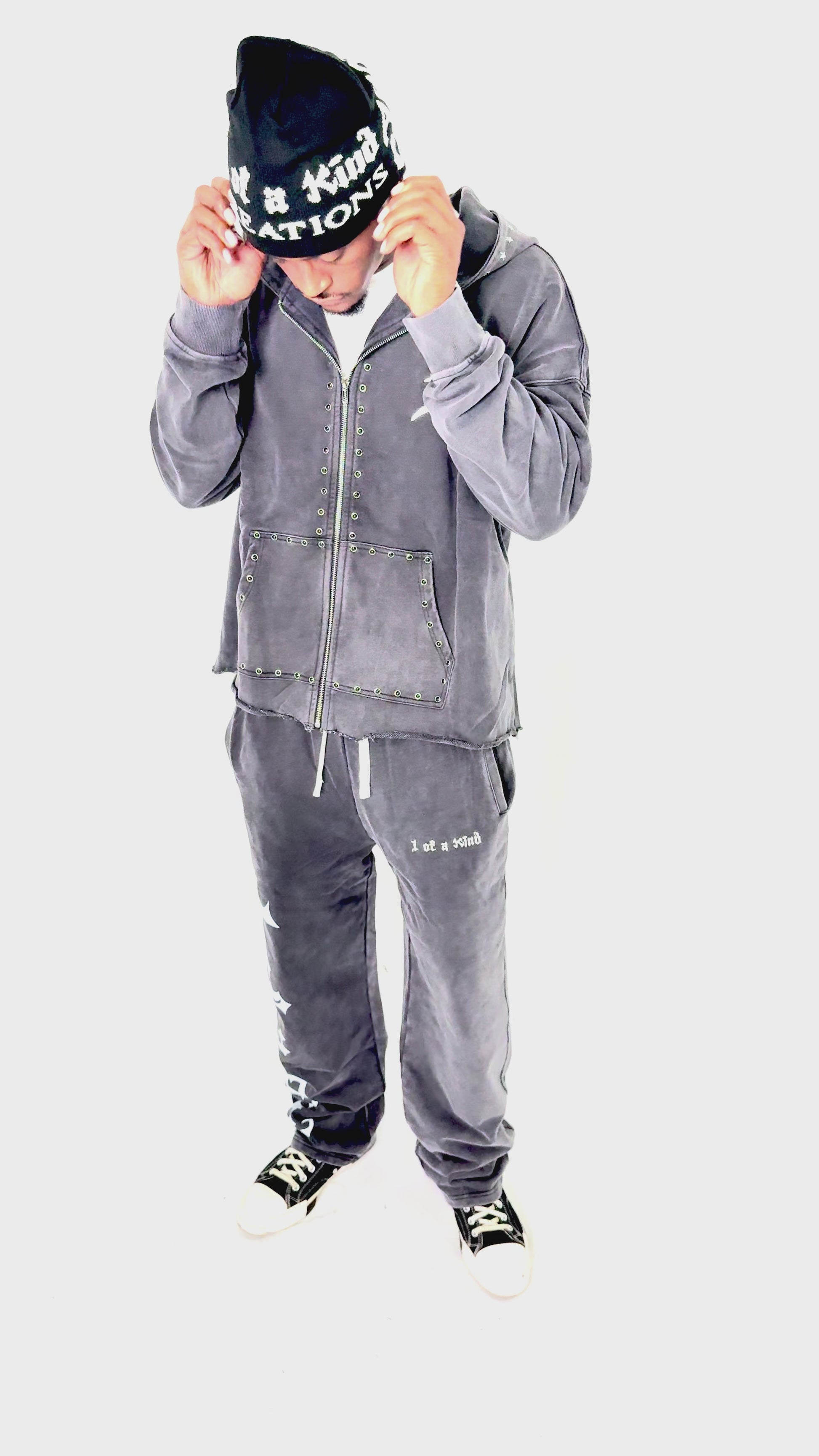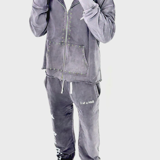 SNOW WASH/CROPPED ZIPPER HOODIE/ RHINESTONES